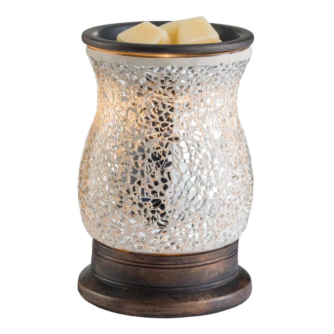 Illumination Fragrance Warmers use a halogen bulb to warm wax melts in the dish, releasing their fragrance. The soft glow of the bulb creates the ambiance and fragrance of a lit candle, without flame, soot, or other pollutants.